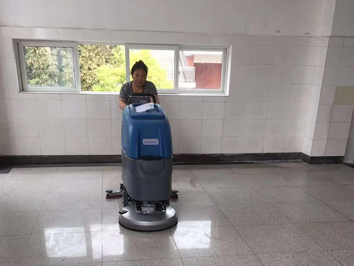 学校是学习的地方,也是对环境要求比较高的场所,来来往往的学生老师往往刚刚拖好的地面又被踩脏了,所以一般保洁工作都要一大早或者是都放学了才开始,但是这无疑给保洁阿姨带来了很多不便,如果用洗地机来保洁就能避免这一问题。